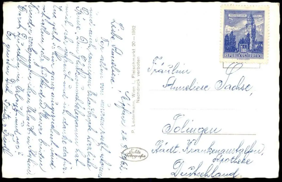 Gelaufen: nein, beschrieben und frankiert 24.08.1962 nach Solingen