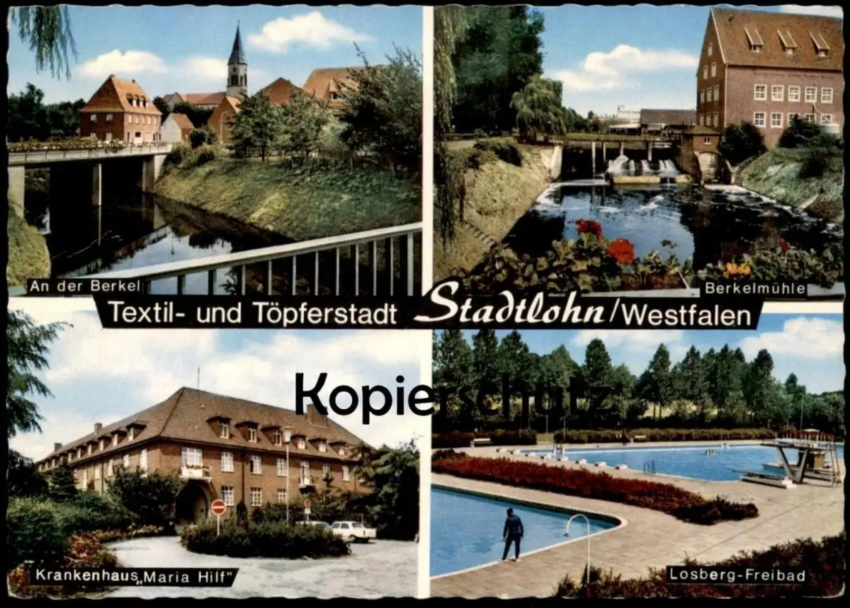 ÄLTERE POSTKARTE STADTLOHN WESTFALEN TEXTIL- UND TÖPFERSTADT AN DER BERKEL BERKELMÜHLE KRANKENHAUS LOSBERG FREIBAD AK