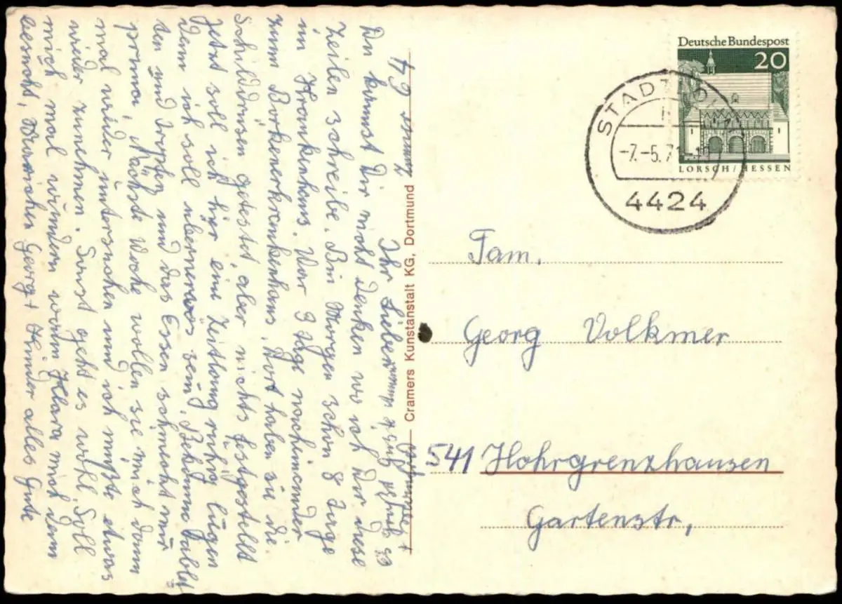 Gelaufen: 07.05.1971 mit Stempel Stadtlohn nach Hohrgrenzhausen (Höhr-Grenzhausen)