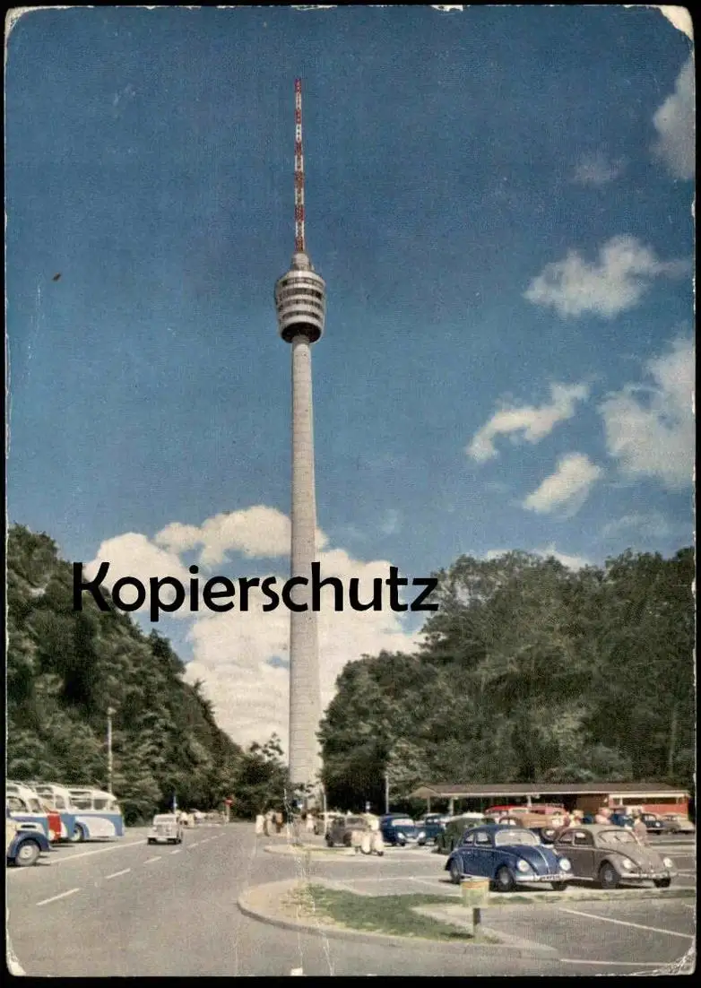 ÄLTERE POSTKARTE STUTTGART FERNSEHTURM ZWEI VW KÄFER & BUSSE BUS AK Ansichtskarte cpa postcard