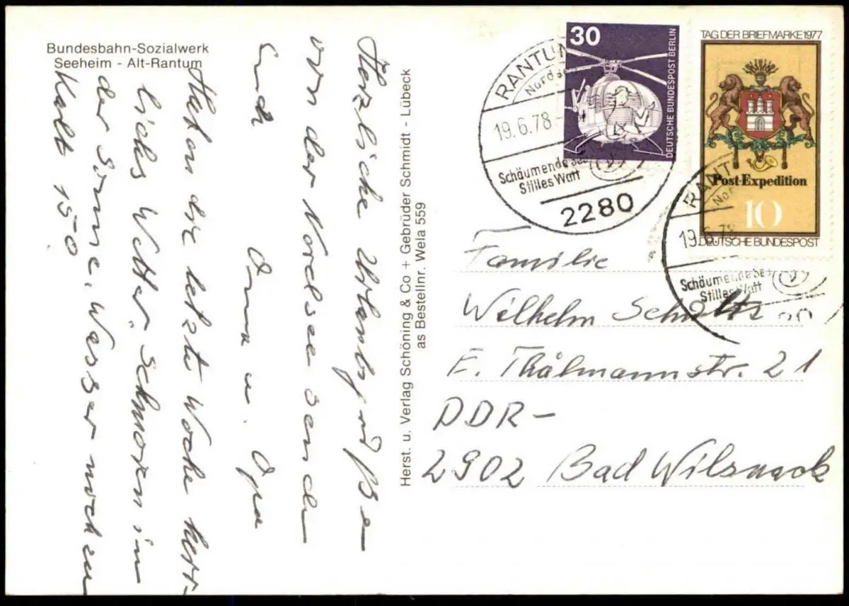 Gelaufen: 19.06.1978 mit Stempel Rantum nach Bad Wilsnack