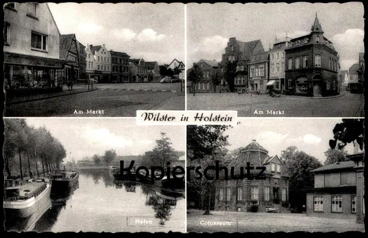 ÄLTERE POSTKARTE WILSTER IN HOLSTEIN AM MARKT COLOSSEUM HAFEN FRACHTSCHIFF SENIA AK Ansichtskarte cpa postcard