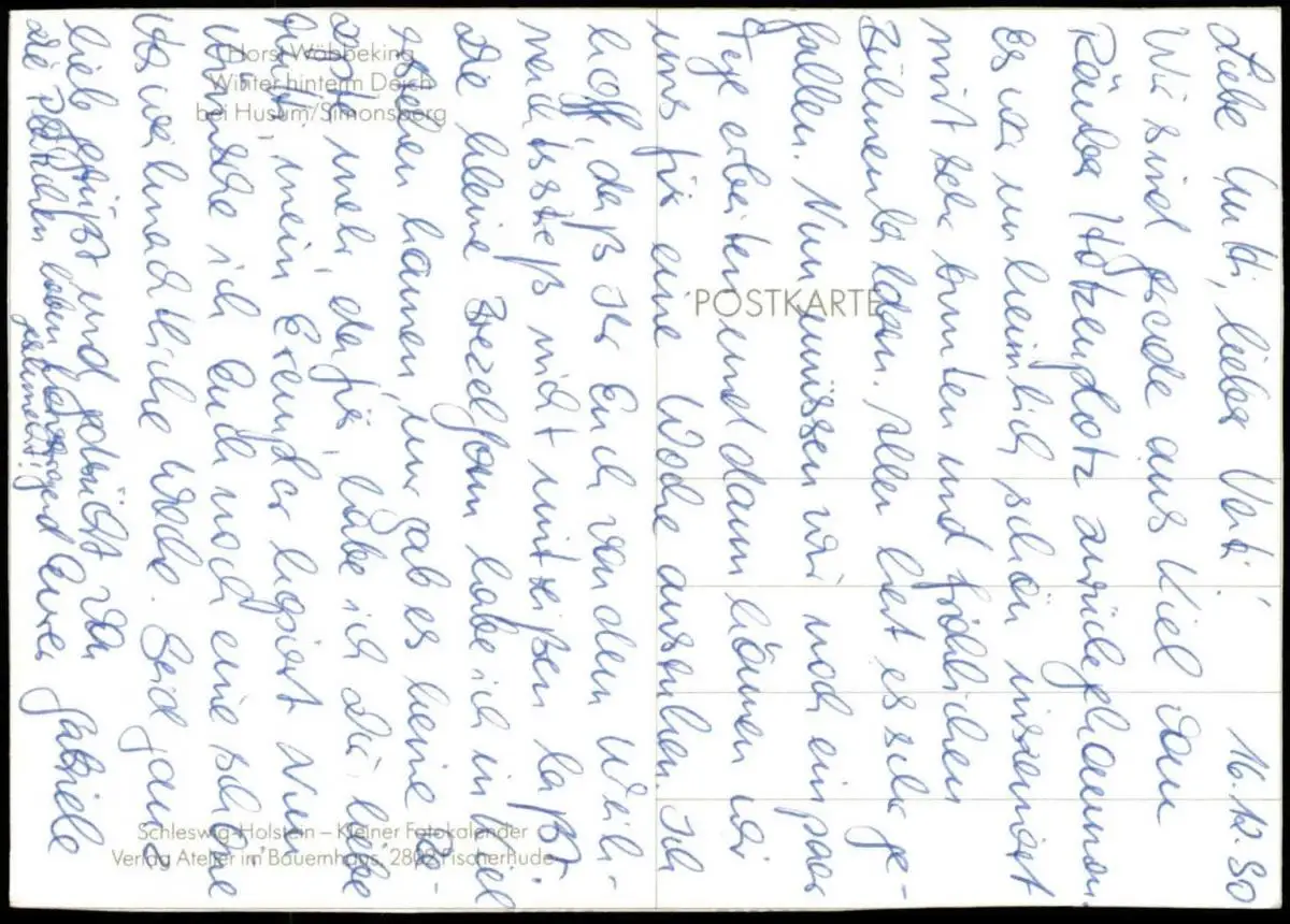 ÄLTERE POSTKARTE HUSUM SIMONSBERG WINTER HINTERM DEICH FriesenhausVerlag: Atelier im Bauernhaus, Fischerhude