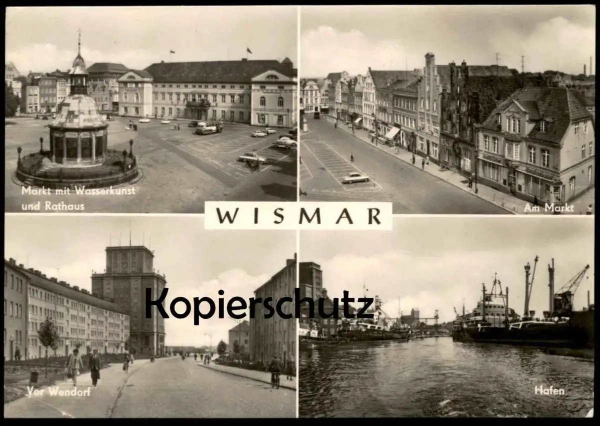 ÄLTERE POSTKARTE WISMAR VOR WENDORF AM MARKT MIT WASSERKUNST UND RATHAUS HAFEN Kaktus Briefmarke cactus stamp postcard