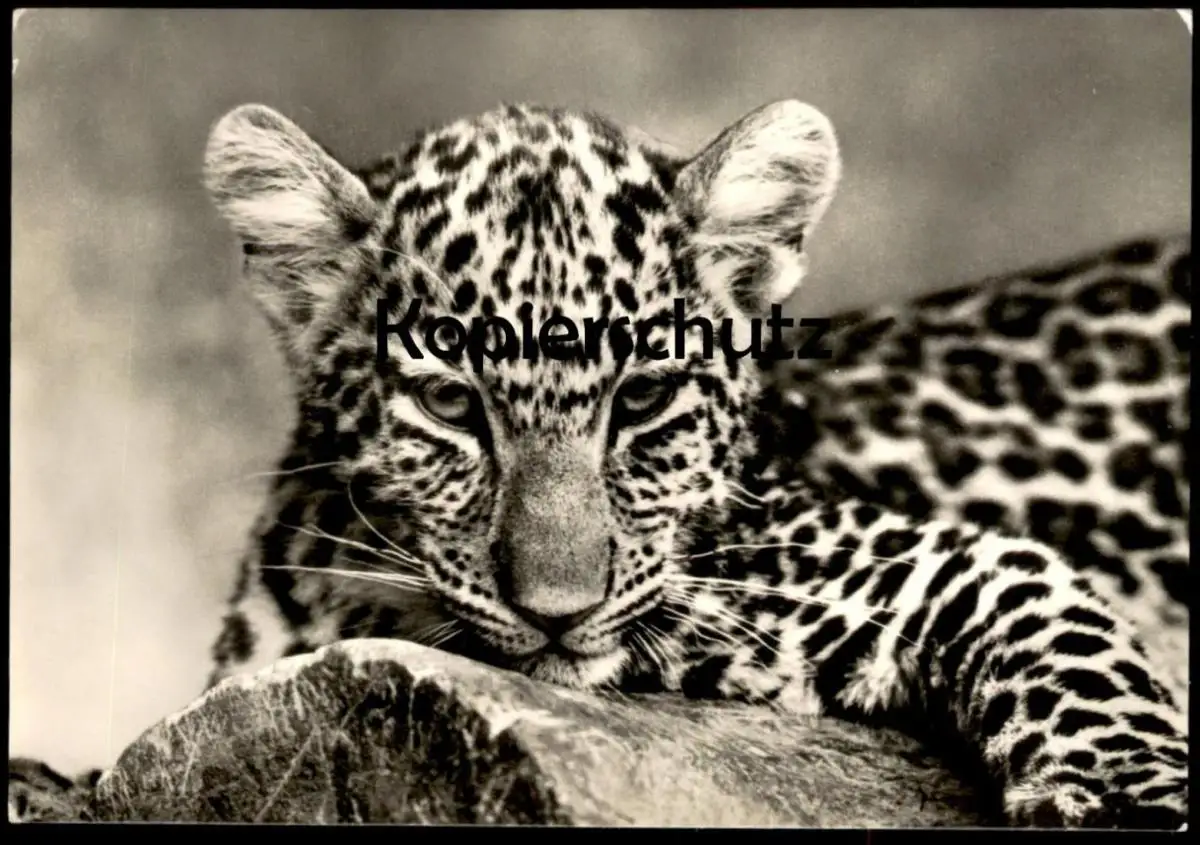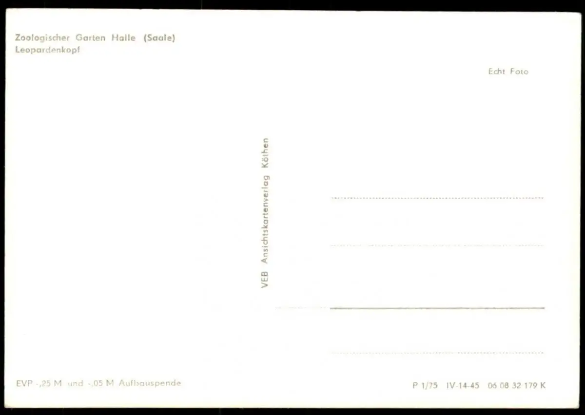 ÄLTERE POSTKARTE ZOOLOGISCHER GARTEN HALLE SAALE LEOPARDENKOPF LEOPARD ZOO Verlag: VEB Ansichtskartenverlag Köthen, 0,05 M Aufbauspende