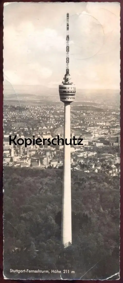 ÄLTERE ÜBERLANGE POSTKARTE STUTTGART DER FERNSEHTURM HÖHE 211m Turm tower tour Nachgebühr Ansichtskarte postcard AK cpa