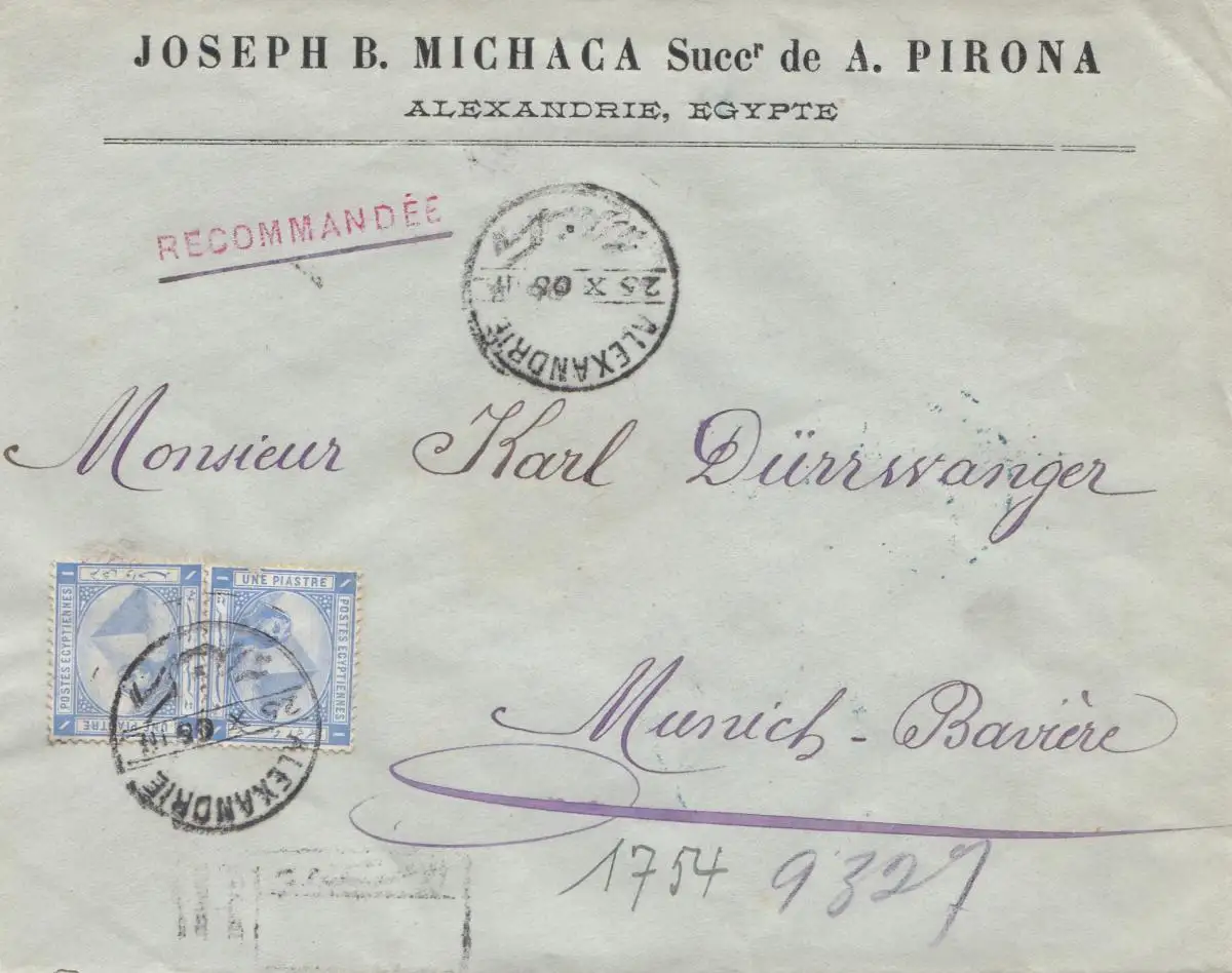 Égypte/Egypte: 1905: Lettre recommandé de Alexandrie à Munich