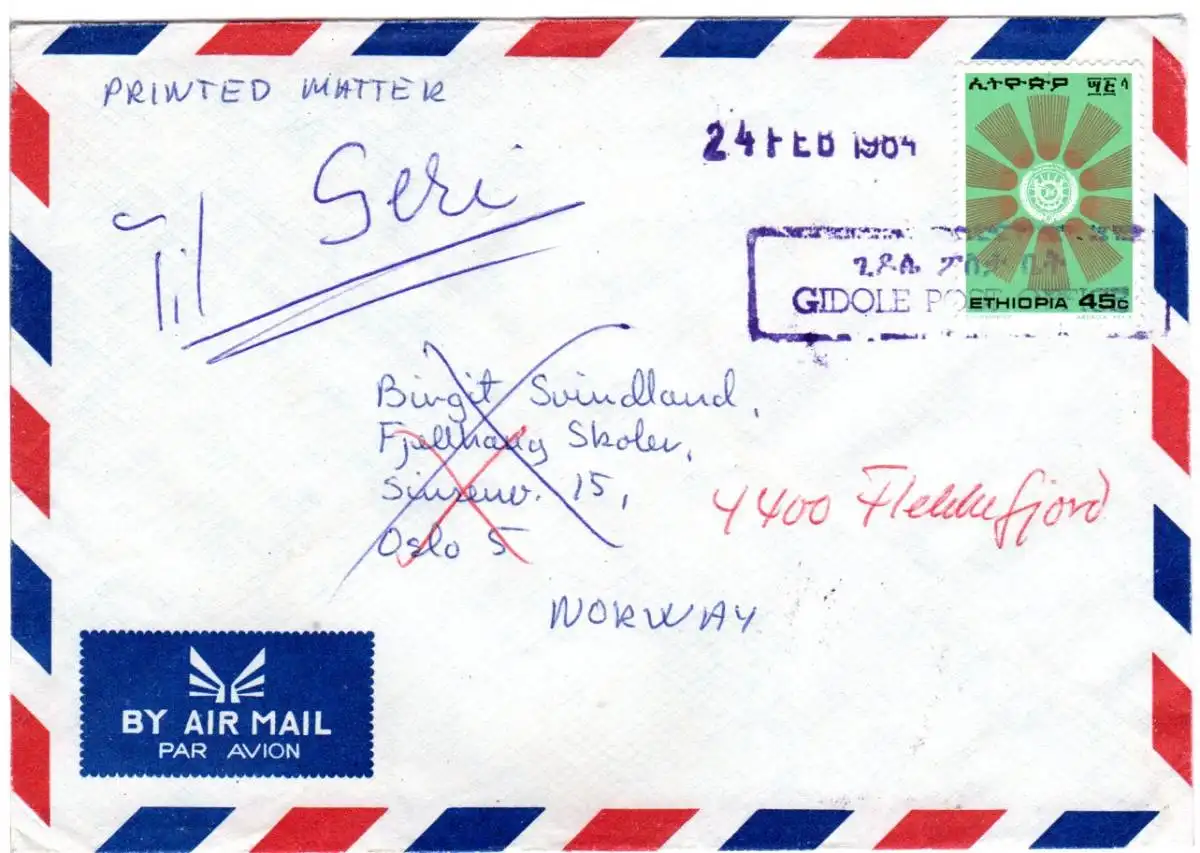 Äthiopien 1984, 45 C. auf Luftpost Drucksache Brief v. Gidole n. Norwegen