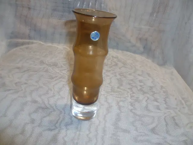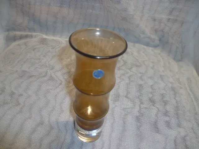 Även Gullaskruf ; MADE in Sweden : hier ein Entwurf von Designer Cari Zalloni 1937 Athen 2012 Rillenglasvase Bernsteinfarben in Form mundgeblasen der 1960 er Höhe: 15,5 cm
