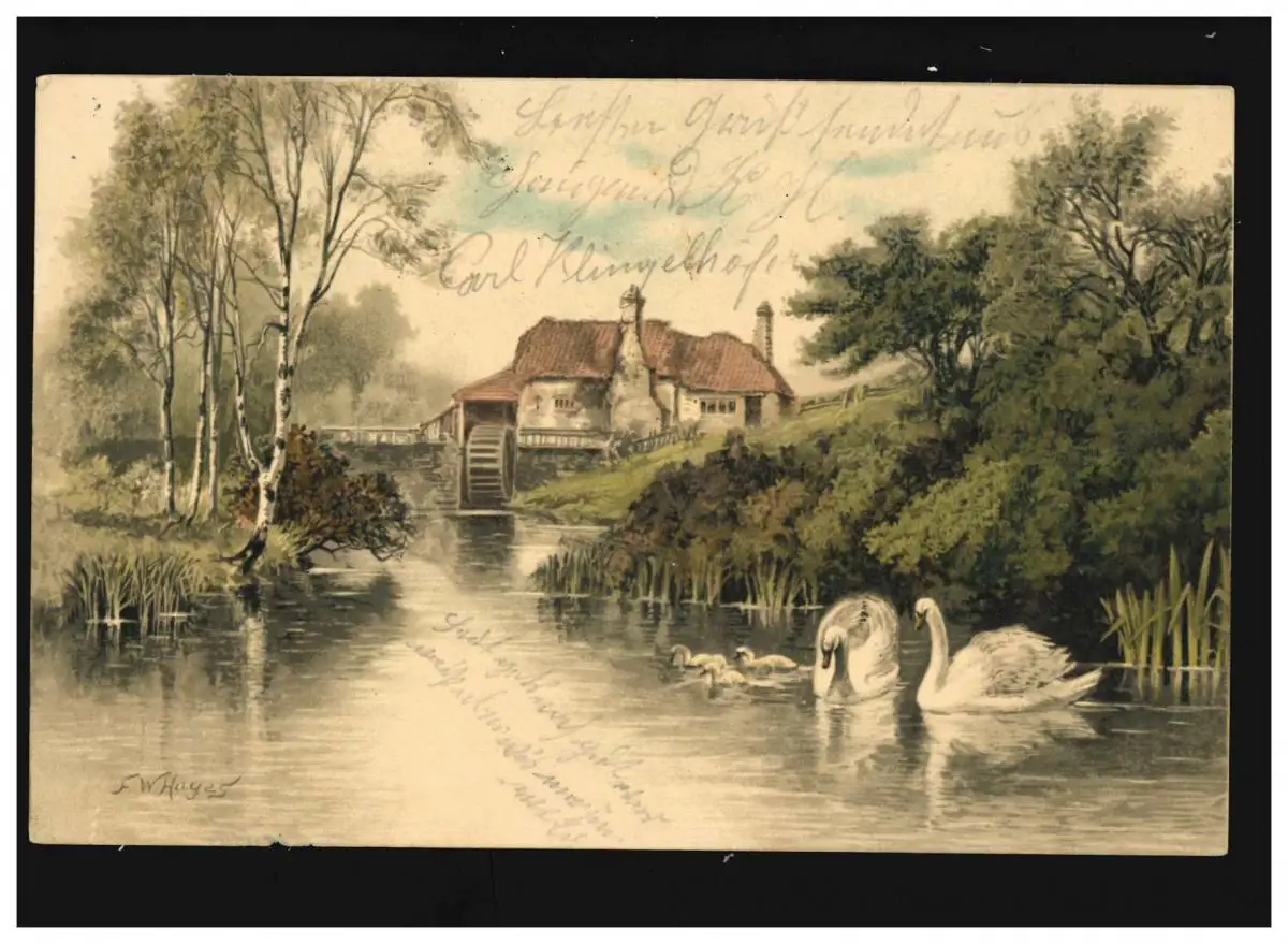 Agriculture Moulin de bouleau Cygne Peintre F.W. Hayes, Niederscheld 26.3.1921