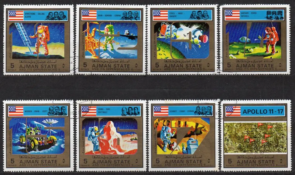 Ajman, Mi-Nr. 2669 - 2676 gest., kompl., Raumfahrt Apollo 11 - 17