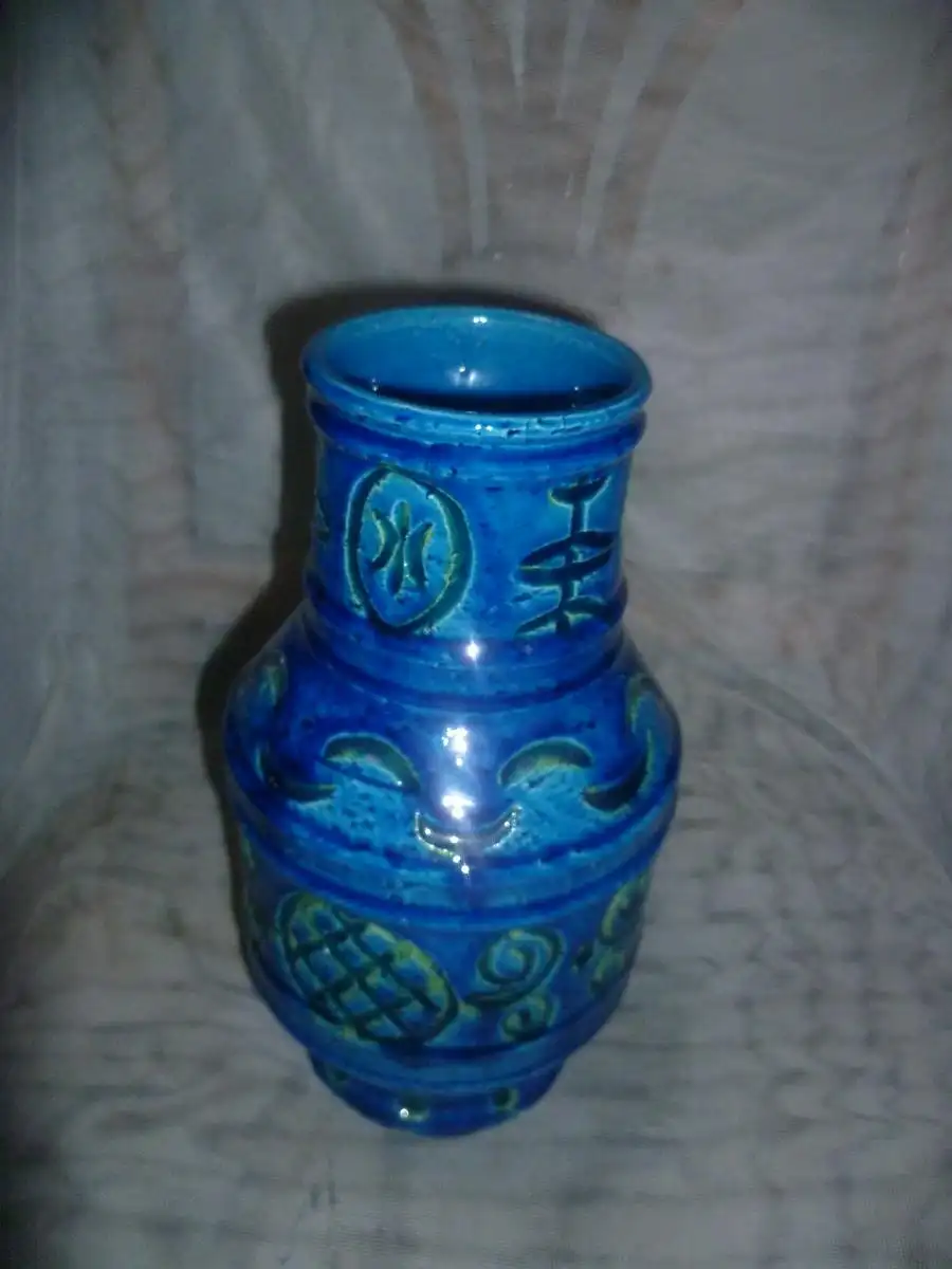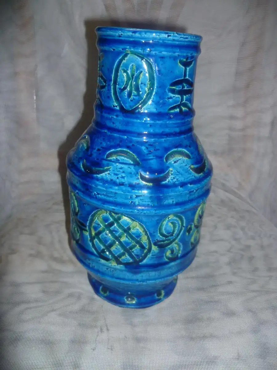 Aldo Londi Bitossi Rimini Blue and Green Vase, Italy, Marked 9323/2S, Jug Vase Höhe: 26 cm aus der Vitrine top!
