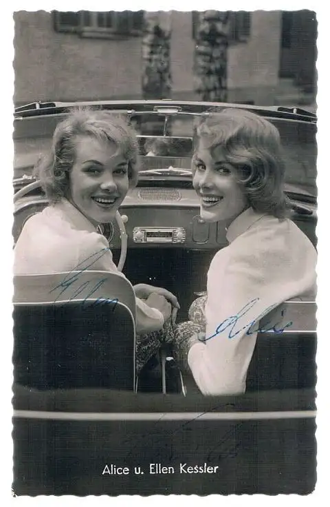 Bemerkungen: Zustand: Minimal berieben, Klebereste auf der Rückseite // Kolibri-Fotokarte Nr. 333. Alice Kessler und Ellen Kessler, *1936. Signiert