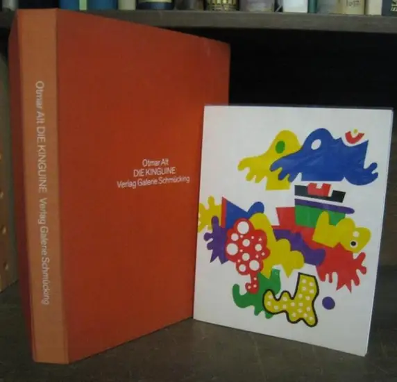 Freie Beschreibung: 25,1 x 20,1 cm. Weiße Originalbroschur mit farbig illustriertem Vorderdeckel, geschützt in einem durchsichtigen Umschlag. 10 Blatt im Blockbuchsatz, mit insgesamt 11 farbigen originalen Linolschnitten, einer davon als Deckelillustration. Im Druckvermerk mit Bleistift numeriert und vom Künstler voll signiert. Gut geschützt in der originalen roten Leinenkassette ( Format 32,3 x 23 cm ) mit weißgeprägten Einbandtiteln, diese ist leicht angestaubt und an den Ecken bestoßen, Vorderdeckel mit winzigem Fleck. Zusätzlich inliegend eine Suite der 11 Bilder auf Blättern im Format 30 x 21,3 cm, jeweils am unteren Rand in Bleistift signiert und numeriert, sauber und frisch. Schönes Exemplar in gutem Zustand