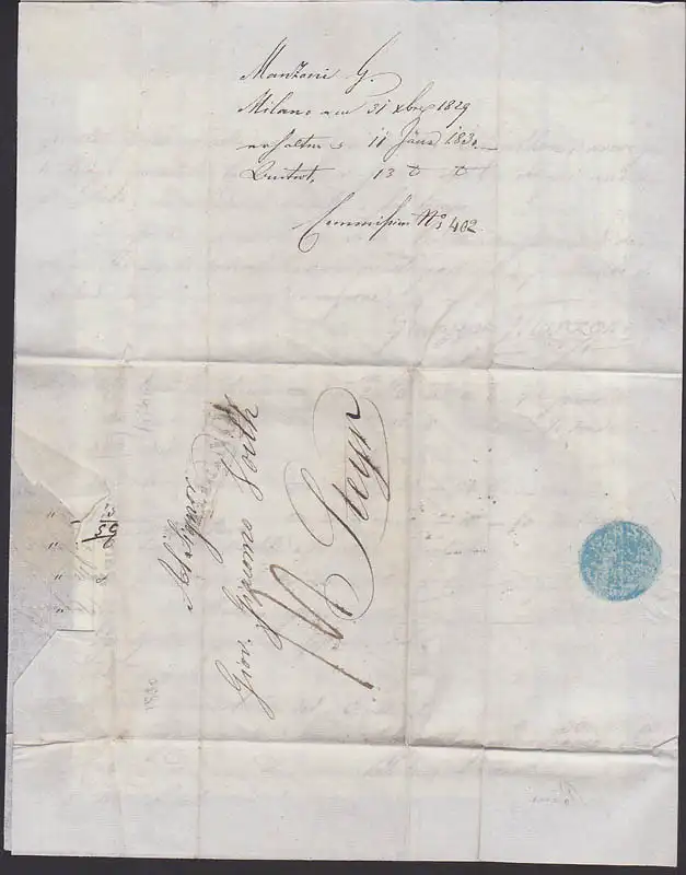 Altbrief 31.12.1829 MILANO nach Steyr, Faltbrief mit viel Text