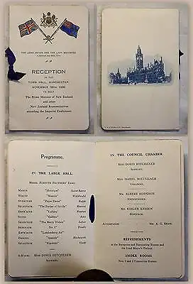Mit aufgeprägtem, goldenen Stadtwappen von Manchester und handcolorierten Fahnen auf dem Titel sowie einer Abbildung des Rathauses auf der Rückseite.