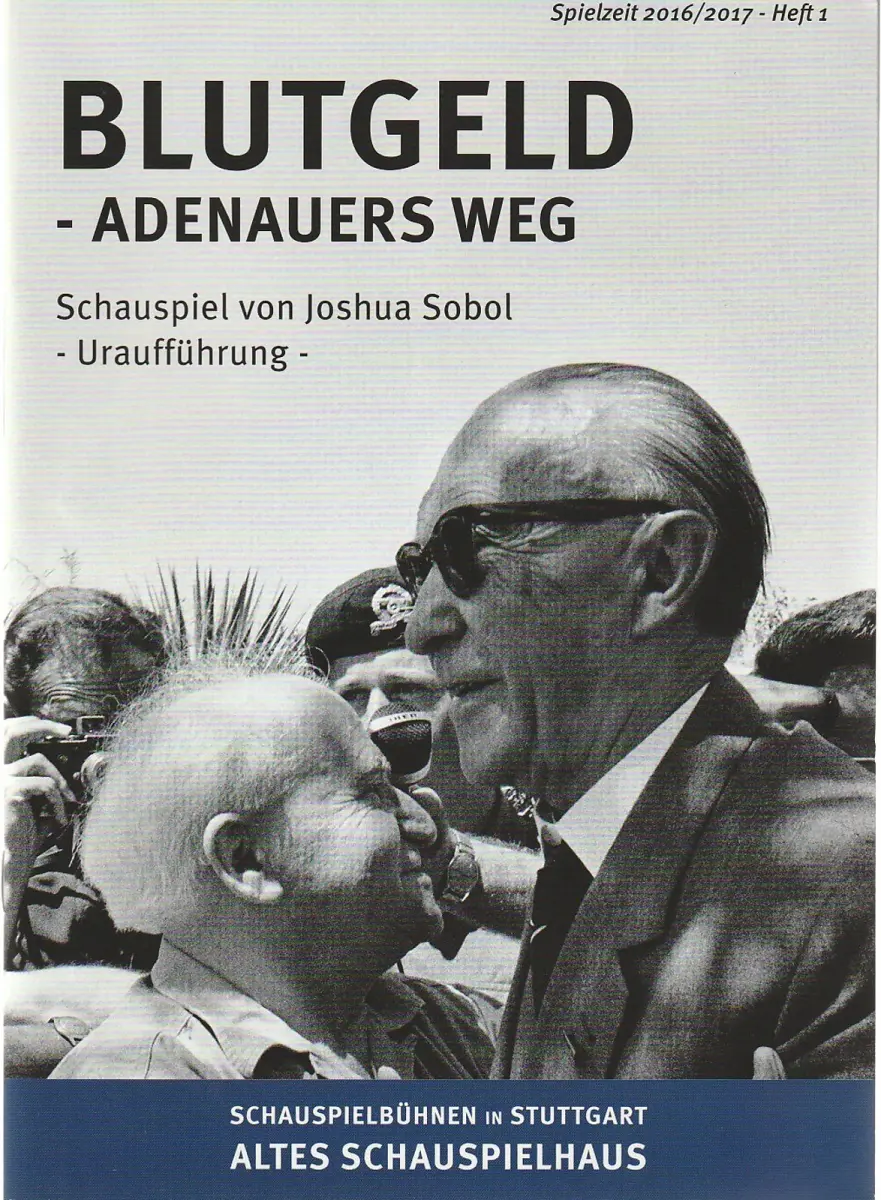 Altes Schauspielhaus Stuttgart, Komödie am Marquardt, Manfred Langner, Annette Weinmann: Programmheft Uraufführung Joshua Sobol BLUTGELD - ADENAUERS WEG 23. September 2016 Spielzeit 2016 / 17 Heft 1.