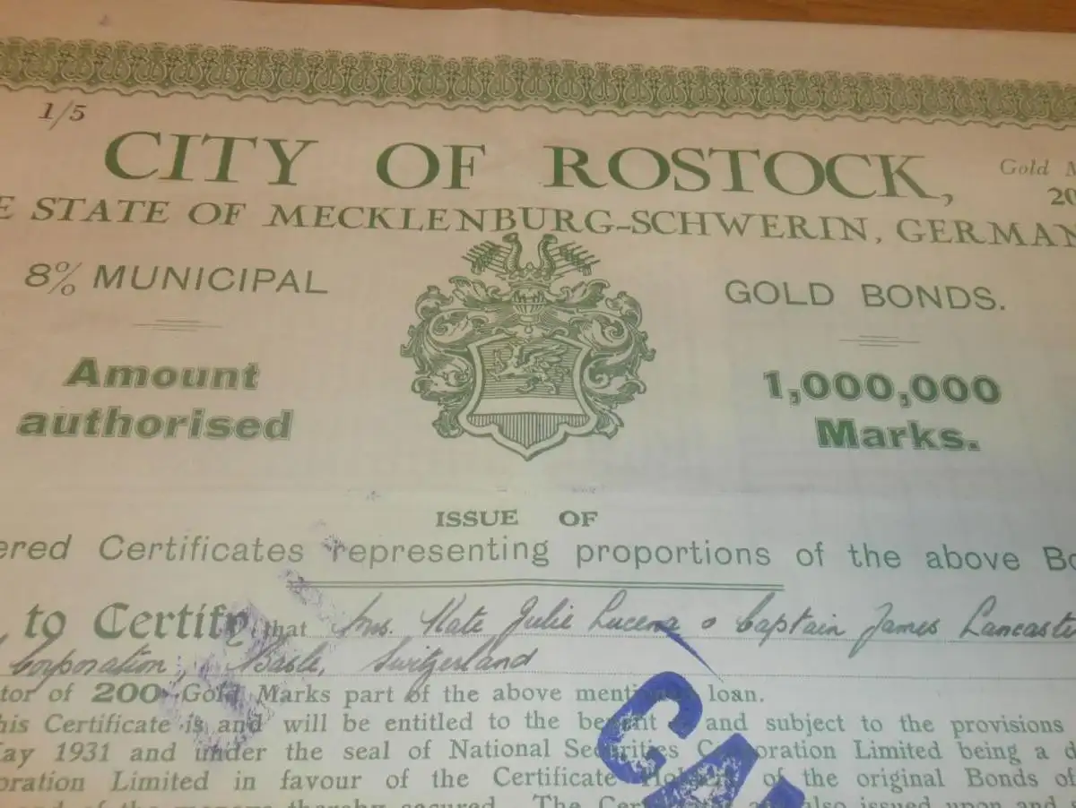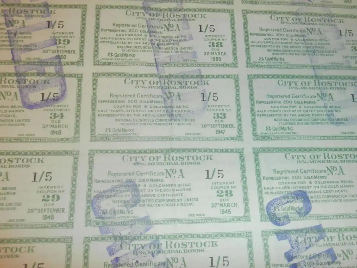 Anleihe / Schuldverschreibung , 200 Goldmark , Gold Bonds , City of Rostock 1931 , Mecklenburg !!!