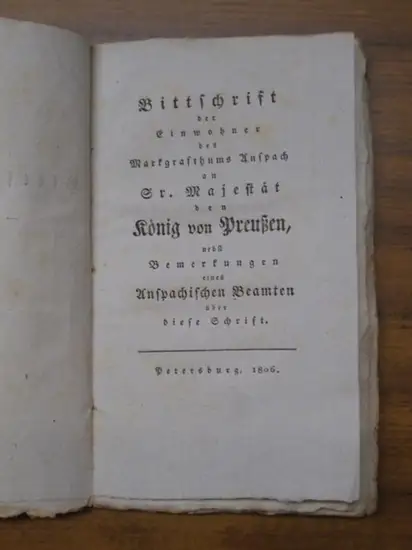 Ansbach. - Bayern: Bittschrift der Einwohner des Markgrafthums Anspach an Sr. Majestät den König von Preußen nebst Bemerkungen eines Anspachischen Beamten über diese Schrift.