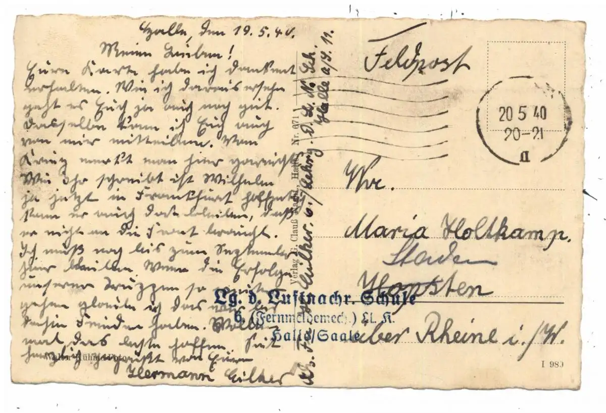 Titel: 0-4000 HALLE / Saale, Am Stadttheater, 1940, Feldpost - Luftnachrichten - Schule