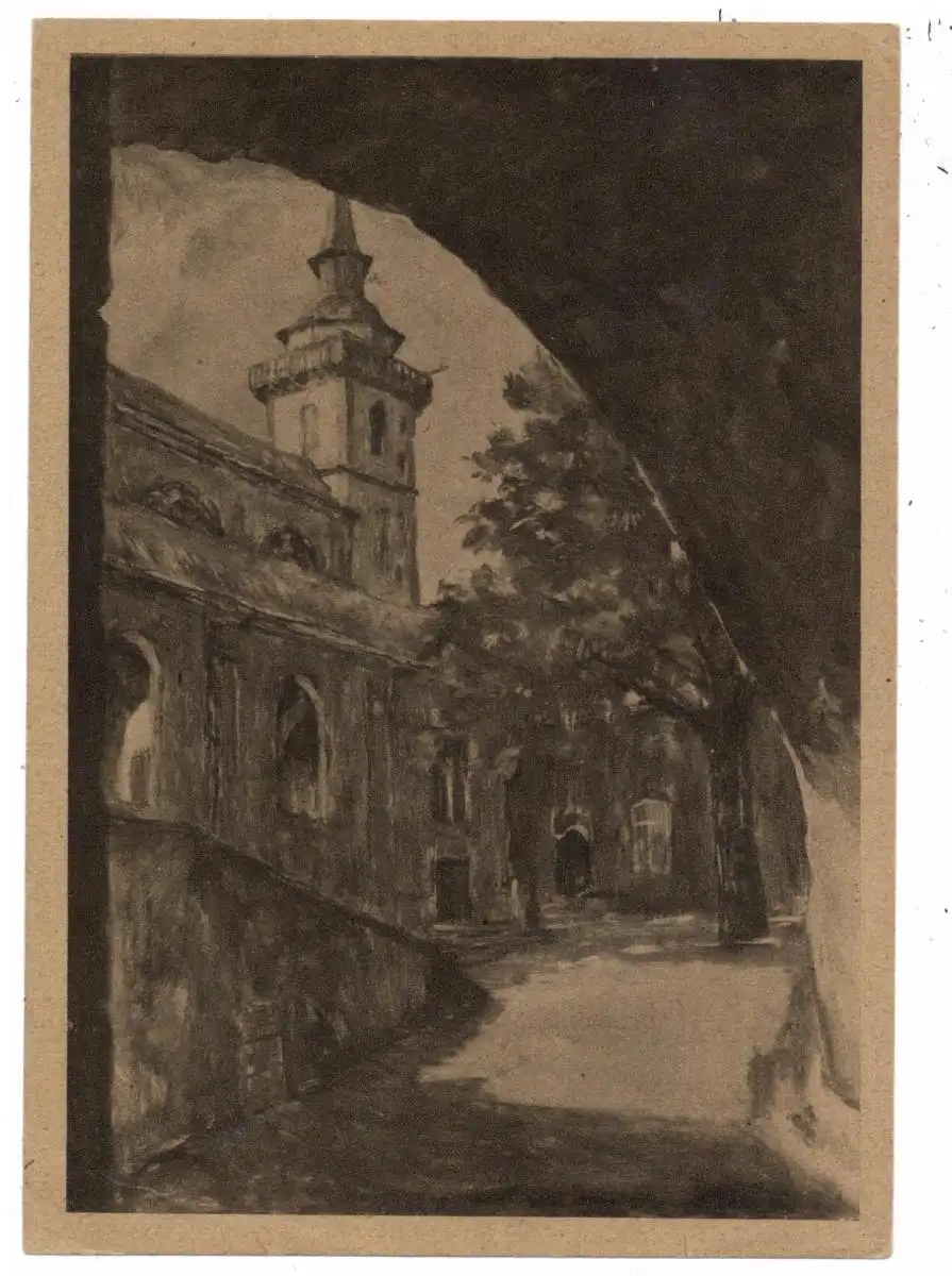 Titel: 5200 SIEGBURG, Abtei Michaelsberg, Blick durch den Torbogen auf den Innenhof und Kirche, 1947