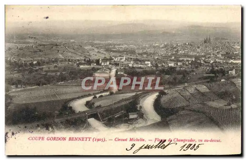 Cartes postales Automobile Coupe Gordon Bennett 1905 Circuit Michelin Virage de Champrader Vu au dessus