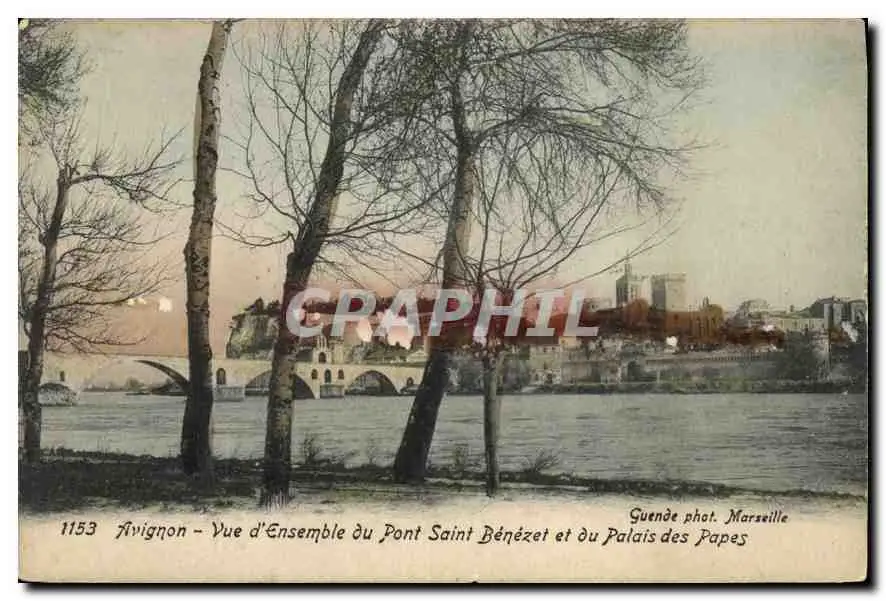Cartes postales Avignon vue d'ensemble du Pont Saint Benezet et du Palais des Papes