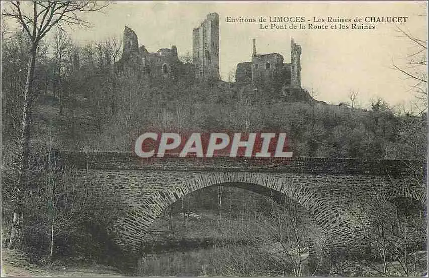 Cartes postales Environs de Limoges Les Ruines de Chalucet Le Pont de la Route et les Ruines