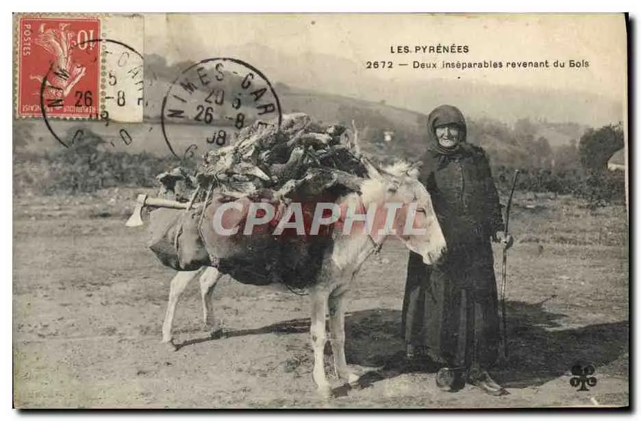 Cartes postales Folklore Pyrenees Deux inseparables revenant du bois Ane Mule