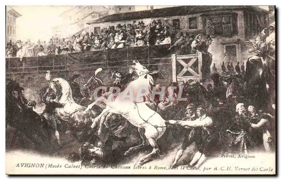 Cartes postales Hippisme Equitation Avignon Musee Calvet Course de chevaux libres a Rome dans le Corso Vernet di