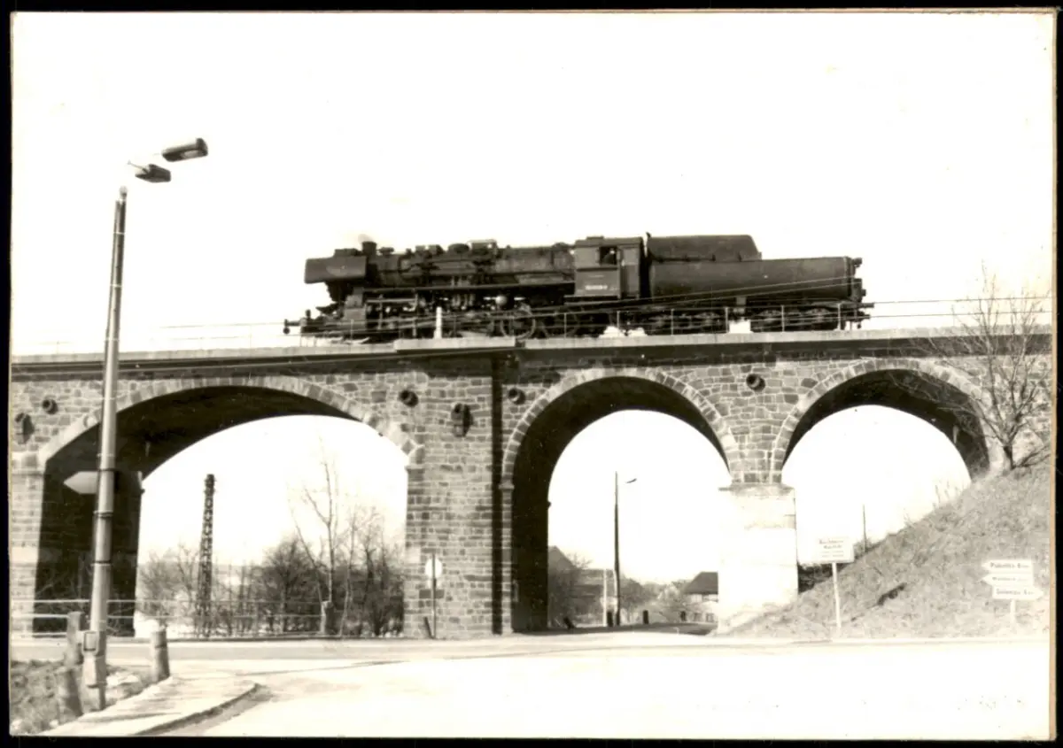 Ansichtskarte Dampflokomotive fährt über Viadukt Eisenbahn 1981
