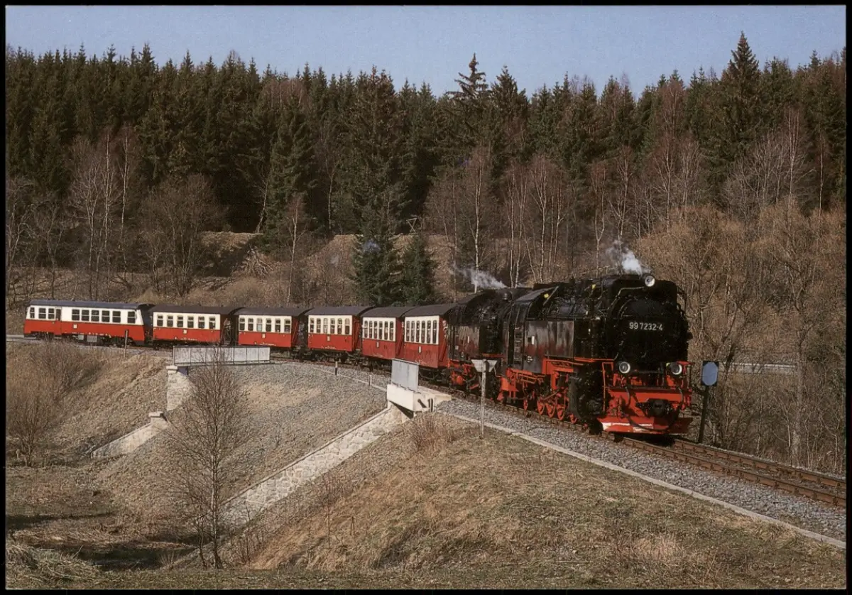 Ansichtskarte Dampfzug der Harzer Schmalspurbahnen bei Sorge 1999