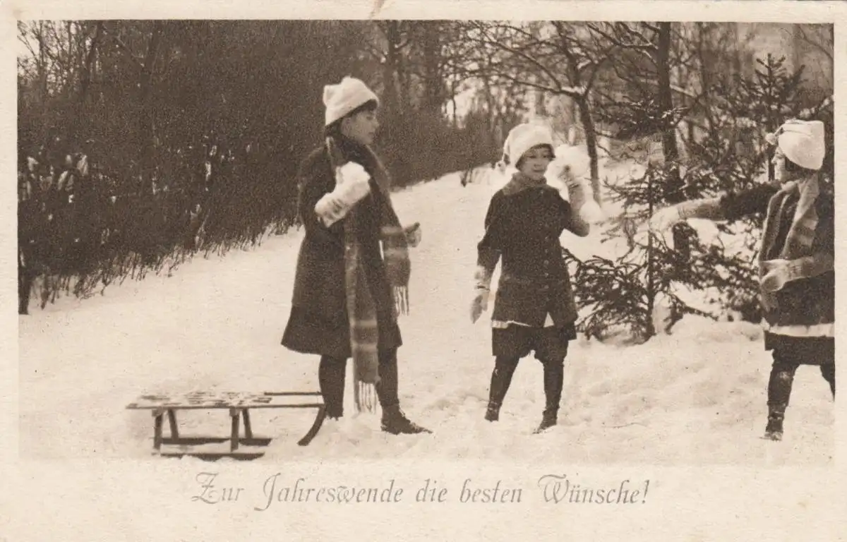 Carte de vue Enfants traîneau, neige, poste de champ matelot supérieur, demi-flottille