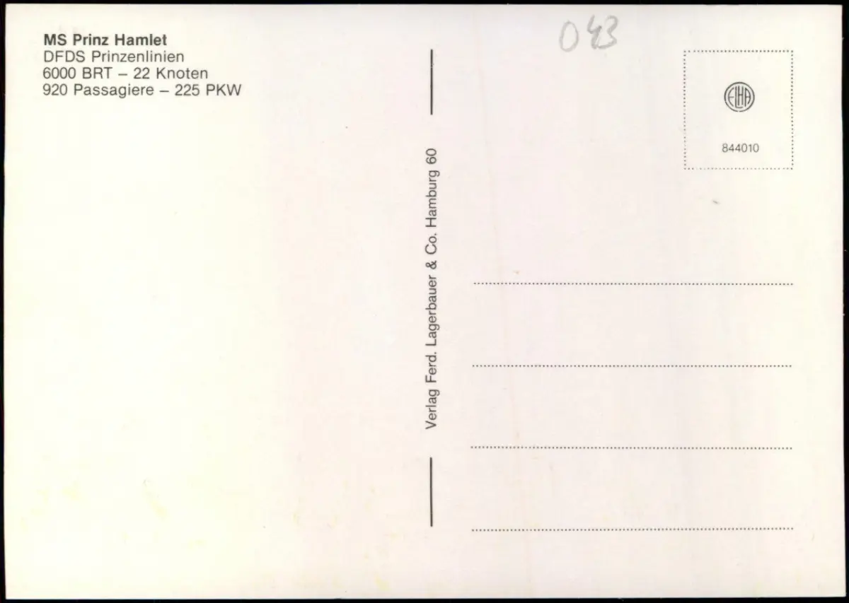 Ansichtskarte MS Prinz Hamlet DFDS Prinzenlinien im Hafen Hamburg 1980