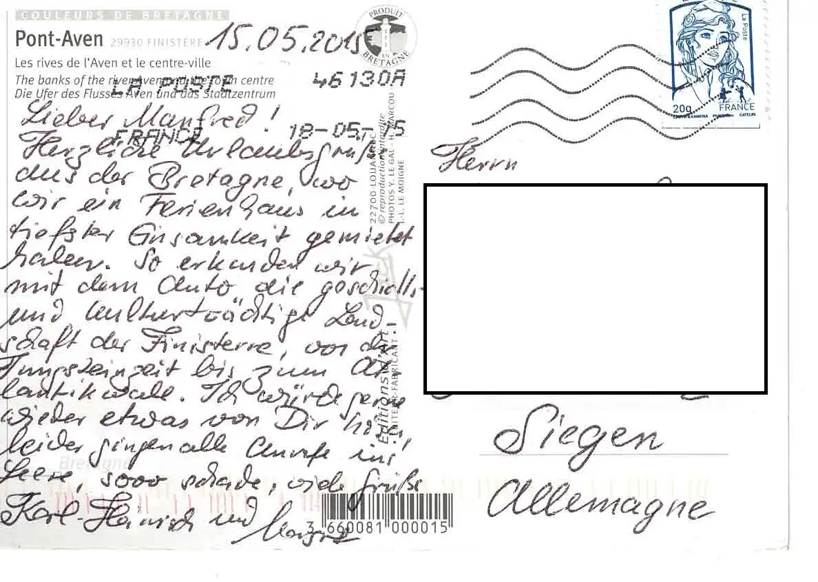 Ansichtskarte Pont-Aven - gelaufen 2015