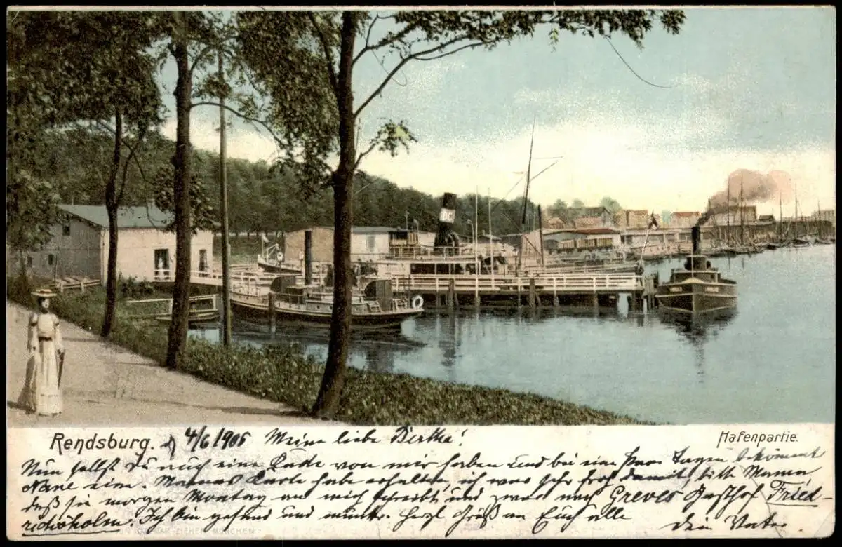Ansichtskarte Rendsburg Hafen Dampfer 1905