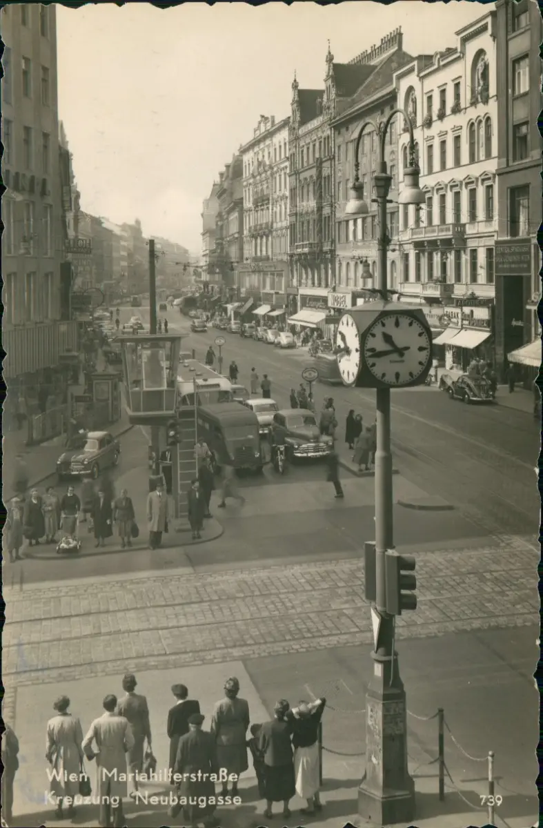 Name: MariahilferstraßeKreuzung Neubaugasse Uhr Autos
