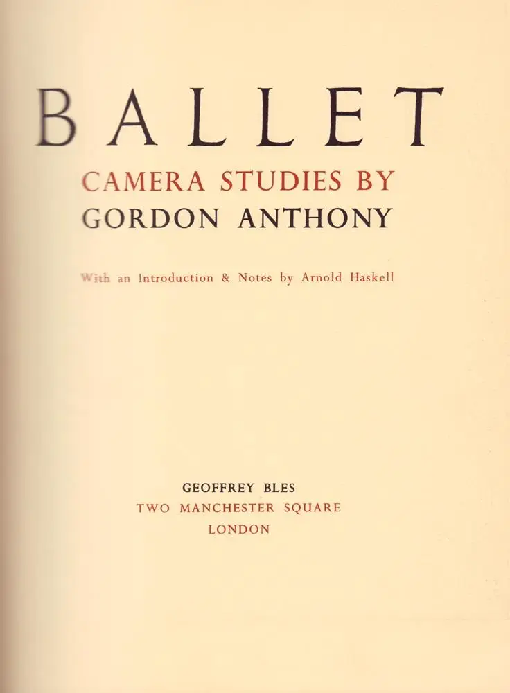 Anthony, Gordon: Ballet. Camera studies. With an introd. & notes by Arnold Haskell. (First printing).