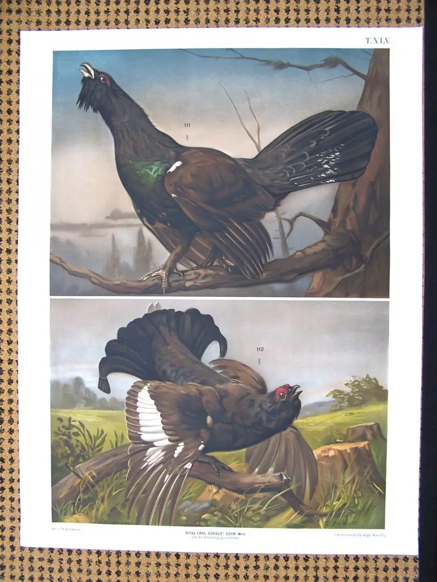 Hartinger's Wandtafeln (1880-1925): Tiere T. XLV., Auerhahn und Birkhahn (vmtl um 1915)