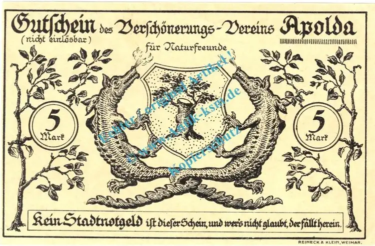 Apolda , Notgeld 5 Mark Schein -C- in kfr. M-G 37.1 , Thüringen o.D. Seriennotgeld