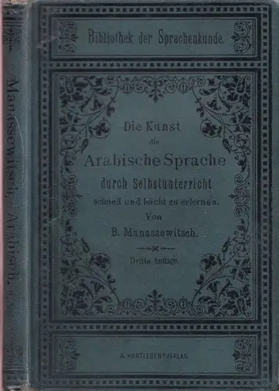 Arabisch. - Manassewitsch, B: Die Kunst die Arabische Sprache durch Selbstunterricht schnell und leicht zu erlernen. Theoretisch-Praktische Sprachlehre für Deutsche auf grammatischer und phonetischer Grundlage unter besonderer Berücksichtigung der vulgär