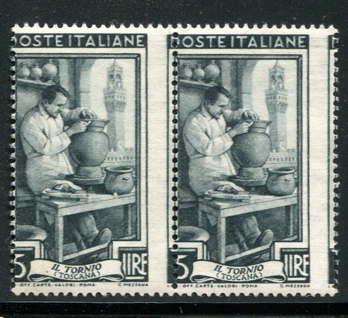 Arbeit Lire 5 Sorten verschobene Verzahnung Vollgummi - Arbeit Lire 5 Nr. 637. Paar mit stark verschobener vertikaler Verzahnung - Ungewöhnlich Cod. 497/13