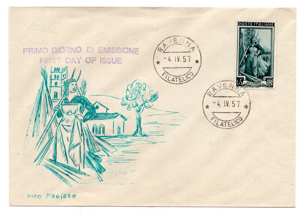 Arbeit Lire 65 Sterne auf Umschlag I. Ausgabetag - Arbeit Lire 65 Sterne Nr. 760 auf Umschlag storniert am 4.4.57 (I. Ausgabetag) - nicht gereist - Ungewöhnliche Nr. 572/20