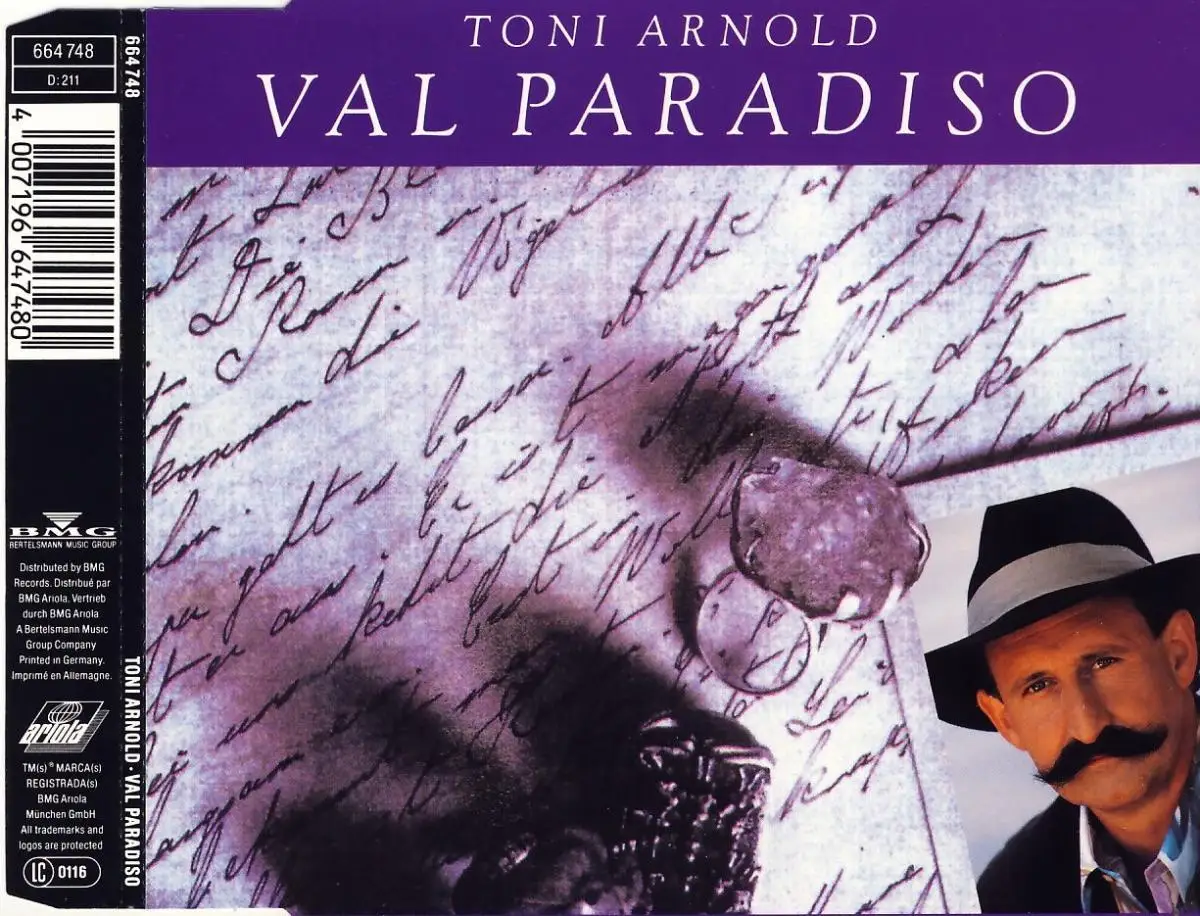 CD Single Toni Arnold - Val Paradiso, état CD M- Hülle M; Fabriqué en Allemagne 1991 Ariola 664 748, Tracks Val parad Iso 3:02, Ade Marina 3:04, vous Nanten Ihn El Marinero 2:55