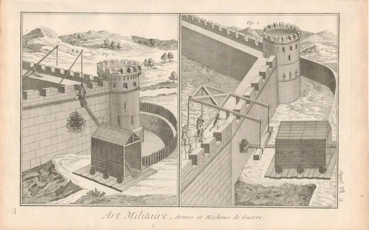 Art Militaire, Armes et Machines de Guerre. Original-Kupferstich. [Robert Benard direx], Diderot / D'Alembert