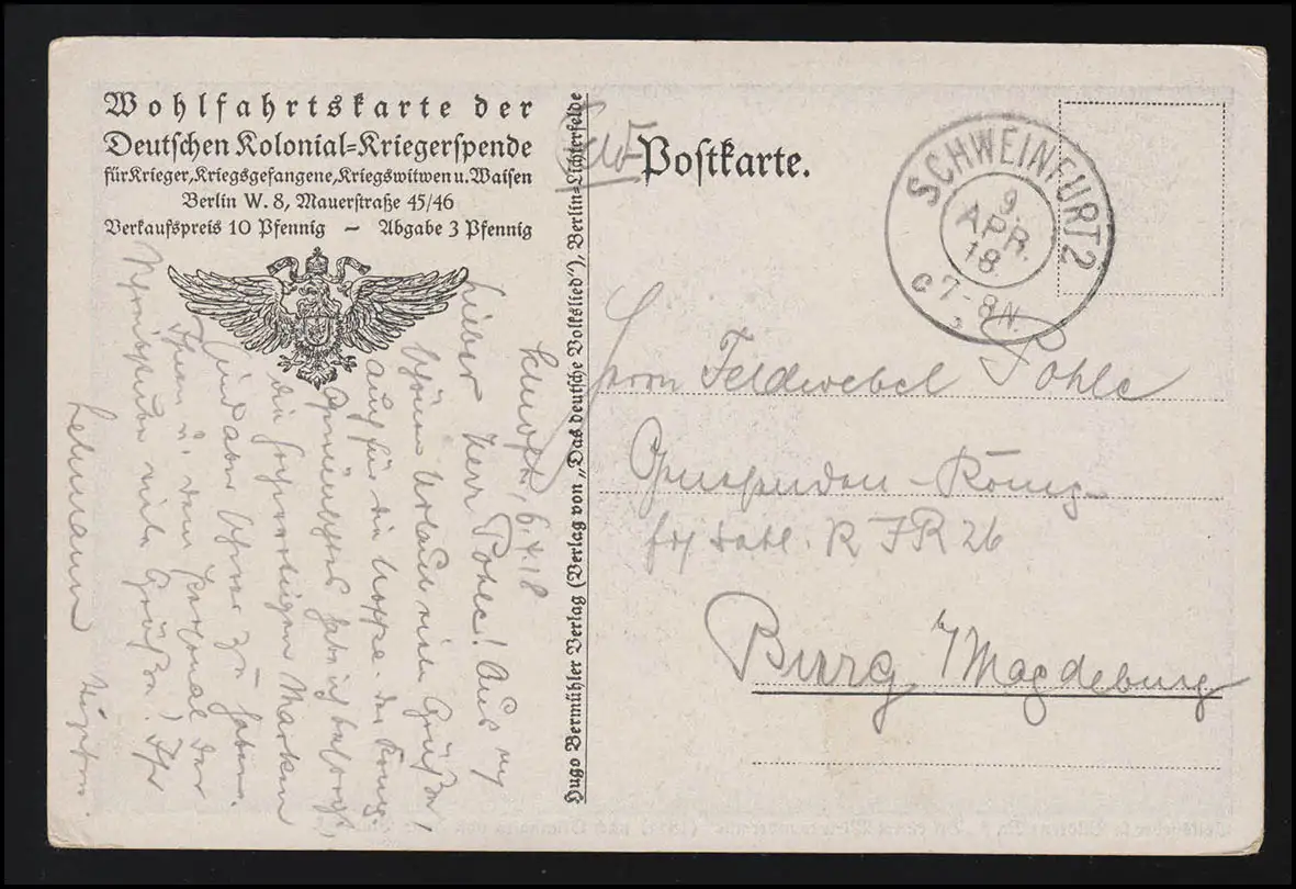 Carte de bien-être de la série de dons de guerriers coloniaux allemands Volkslieder, n° 5 " Sie Wirte mird ." Examen: original Référence produit: 00000000048103