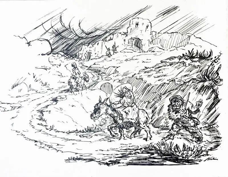 Auf der Flucht. Federlithogaphie auf Karton, Kubin, Alfred
