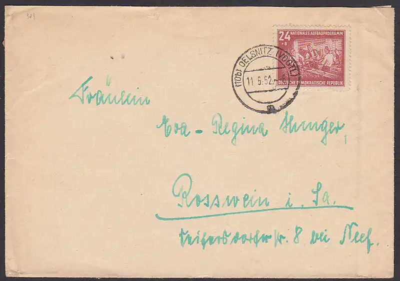 Aufbauprogramm 24 Pfg. Zuschlagsmarke Fernbrief 11.5.52 (304)