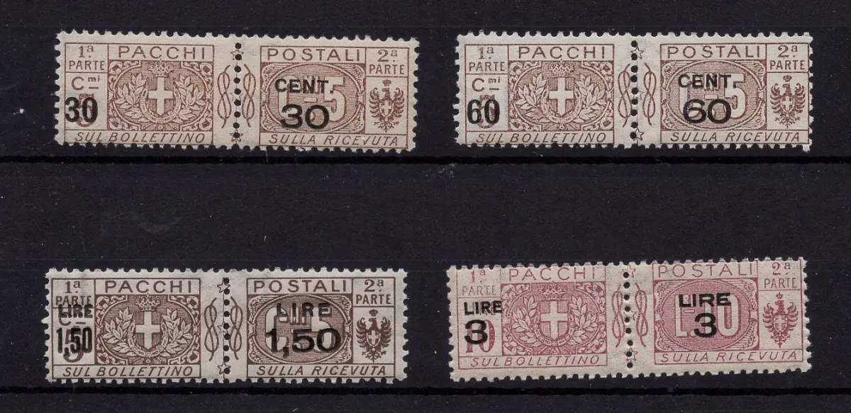Aufdruckte Postpakete Nr. 20/23 MNH Vollgummi - MNH - Postpakete Nr. 20/23 Komplettserie in sehr guter Qualität und Zentrierung mit Vollgummi - Kat. euro 55 Cod.1262/WEB