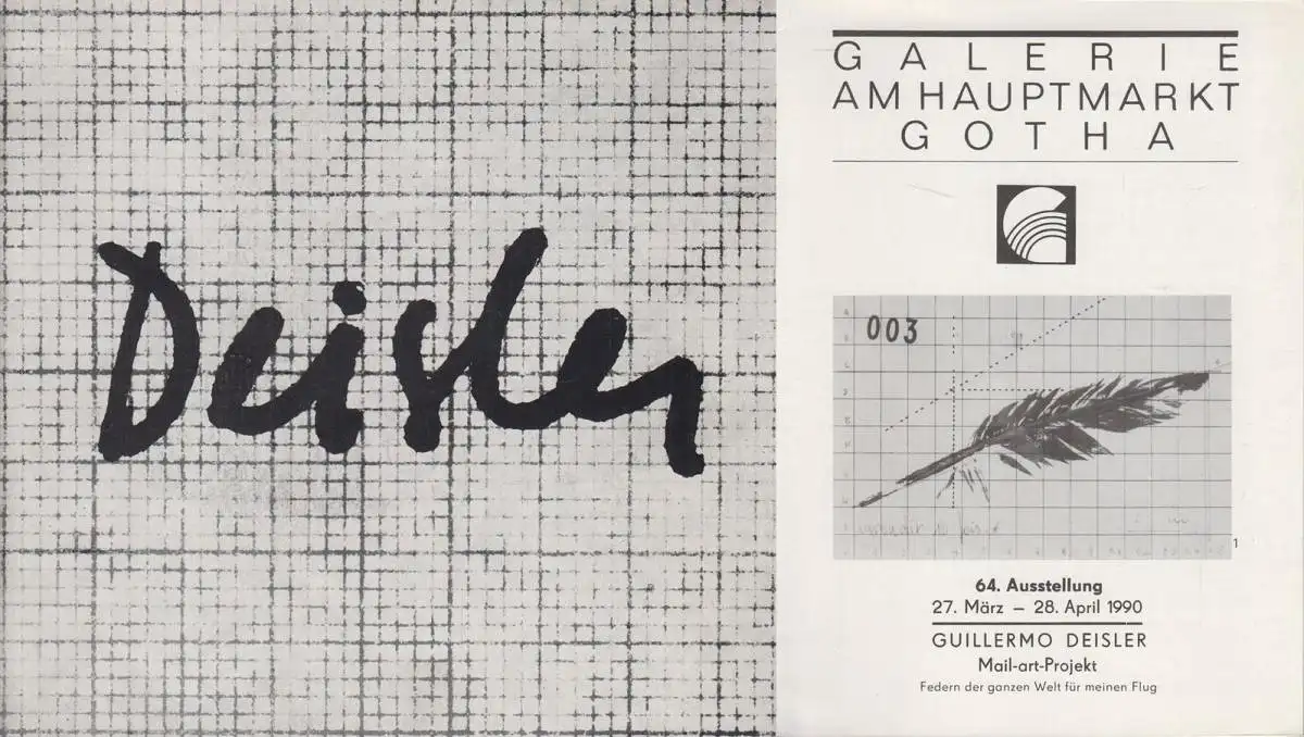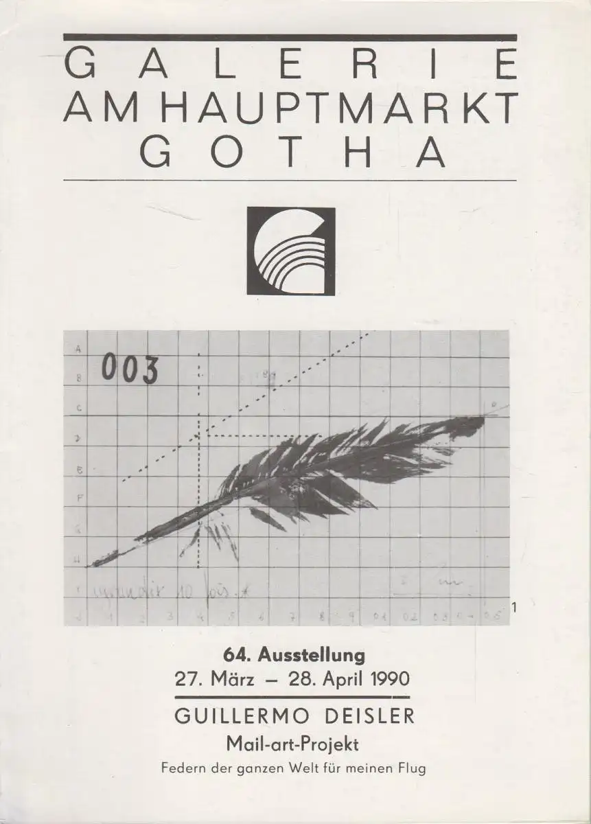 Bemerkungen: Zustand: Umschlag leicht berieben. // Mit zahlreichen Abbildungen und Beilage: Galerie am Hauptmarkt Gotha, 64. Ausstellung 1990, Guillermo Deisler, Mail-art-Projekt. Unser Produktfoto entspricht dem hier angebotenen Artikel. Alle Artikel befinden sich stets in gebrauchsfähigem Zustand. Gebrauchte Bücher sparen Ressourcen gegenüber Neuware und schonen die Umwelt.